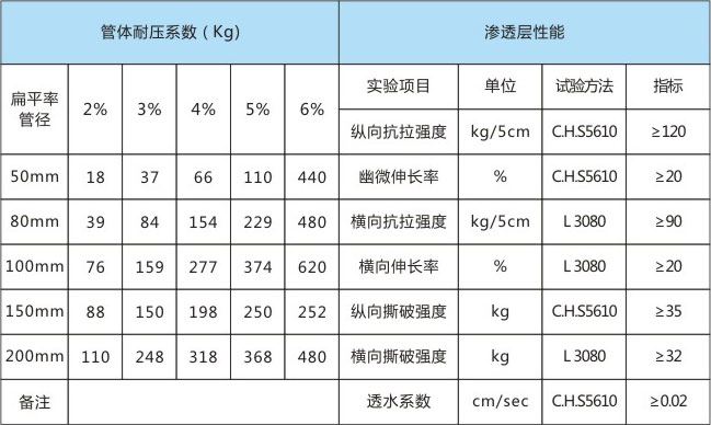 軟式透水管是一種具有倒濾鏡(排)水作用的新型管材,它克服了其他排水管材的諸多弊 病,因其生產(chǎn)獨(dú)特的設(shè)計(jì)原理和構(gòu)成材料的優(yōu)良性能,它排、滲水效果強(qiáng),利用”毛細(xì)"現(xiàn)象和”虹 吸”原理、集吸水、透水、排水為一氣呵成,具有滿(mǎn)足工程設(shè)計(jì)要求的耐壓能力及透水性和反濾作用。不因地質(zhì)、地理溫度變化而產(chǎn)生斷裂,并可達(dá)到排放凈水的效果,不會(huì)對(duì)環(huán)境造成二次污 染,屬于環(huán)保產(chǎn)品.因其施工簡(jiǎn)便,無(wú)接頭,對(duì)地質(zhì)、地形無(wú)特殊要求,任何需要用暗排水的地 方都可以隨心所欲地使用。