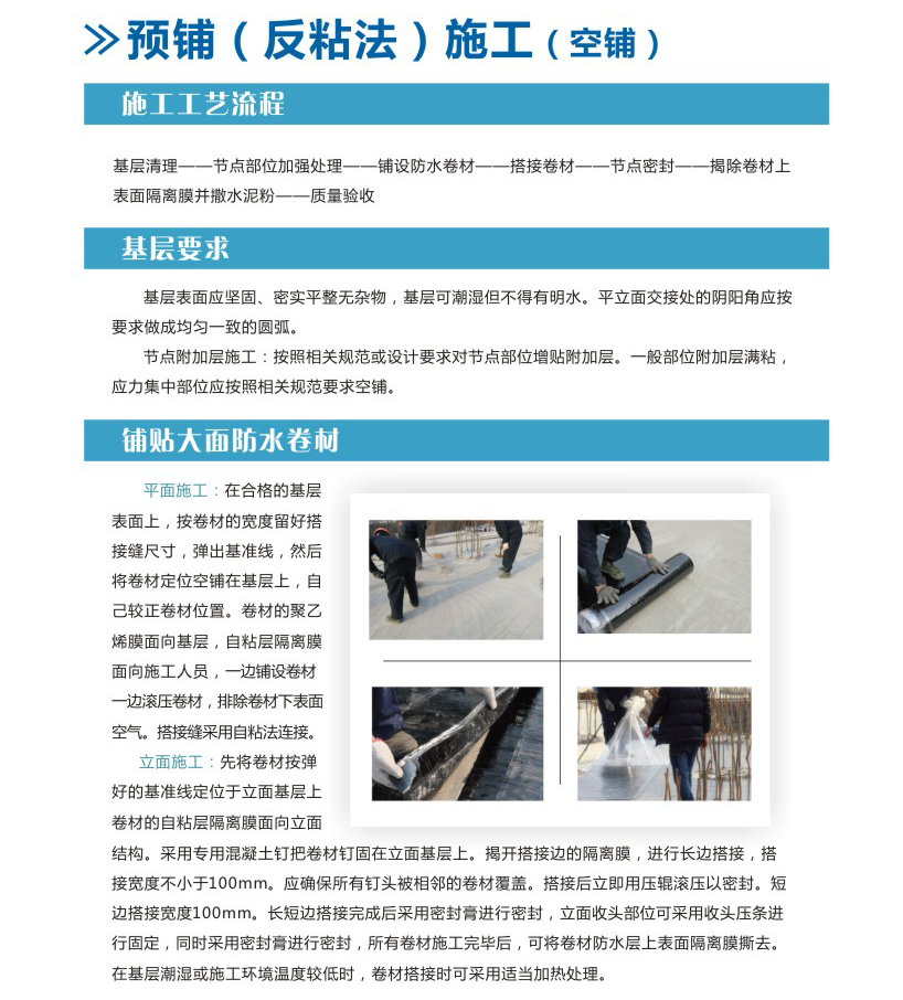 預鋪(反粘法)施工(空鋪)