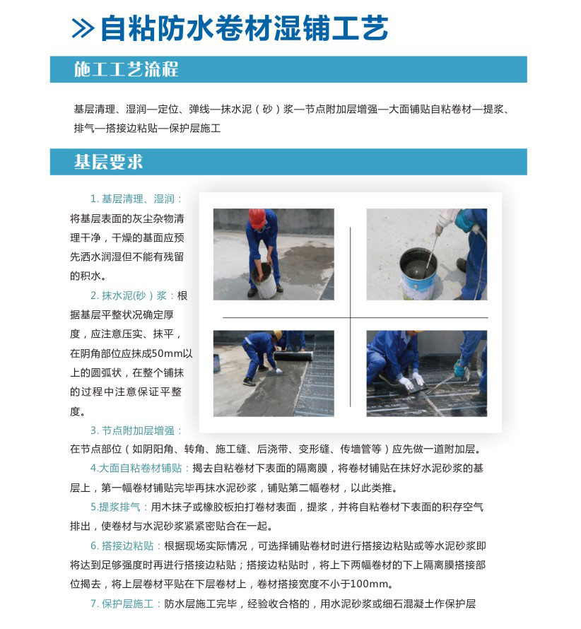 自粘防水卷材濕鋪工藝
