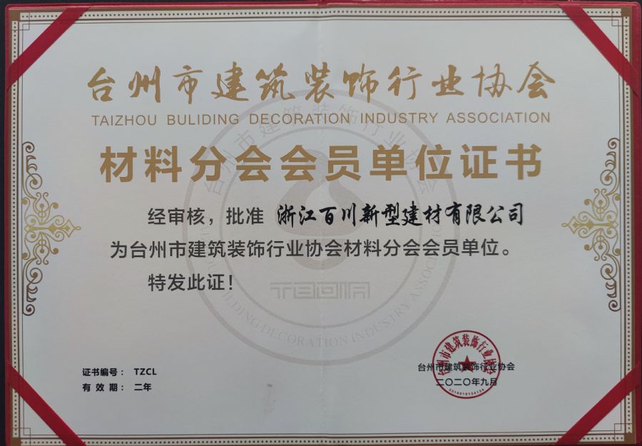 臺(tái)州市建筑裝飾行業(yè)協(xié)會(huì)證書